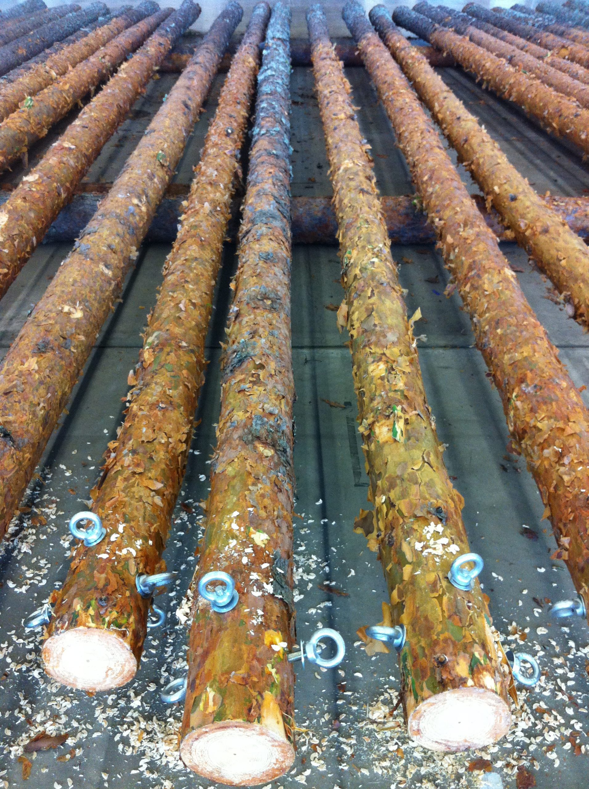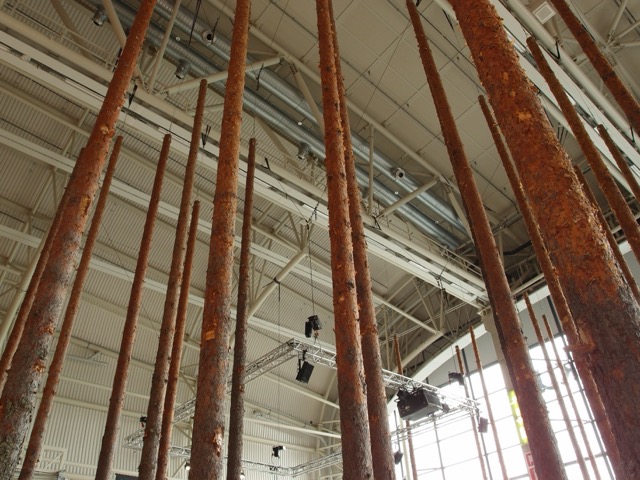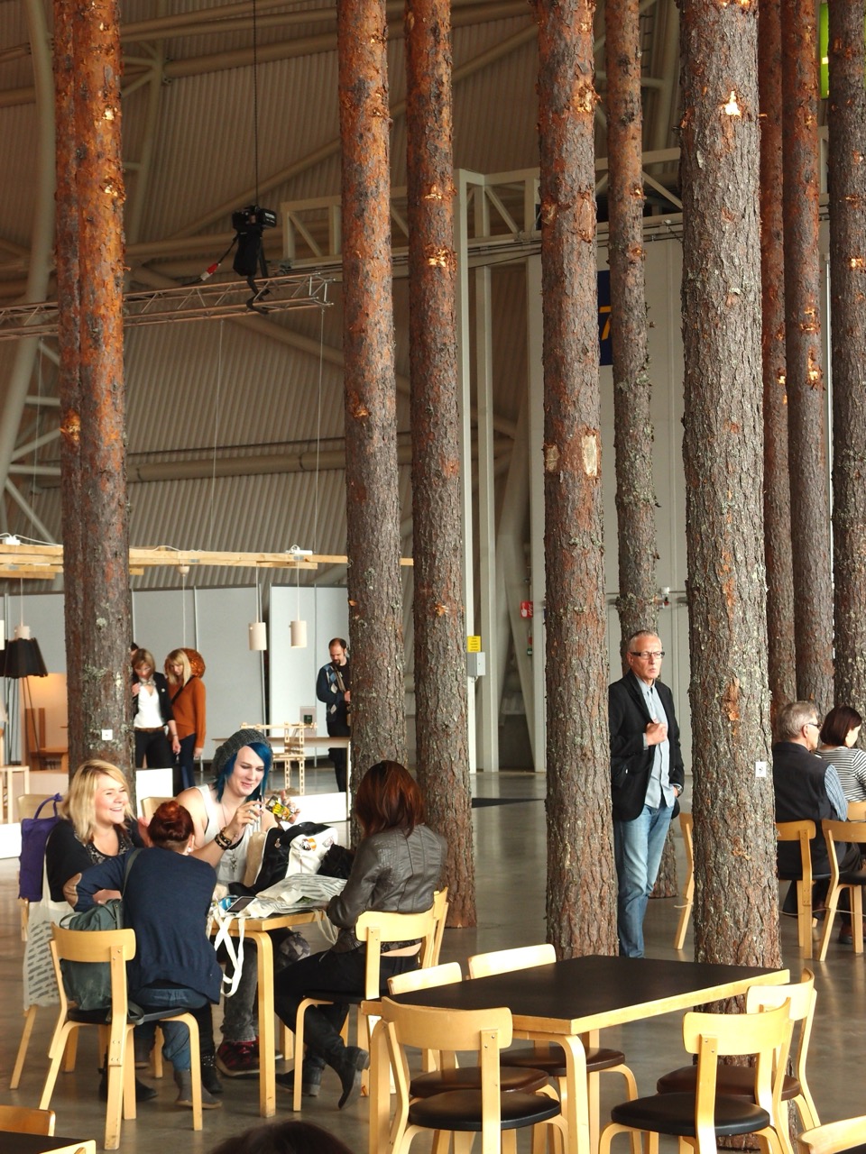 Interior architecture for the Ahead! design area of 7000m2 in the Habitare furniture fare with the theme Responsability. 100 logs of 12–15m in hight are creating an abstraction of a forest in the space. The logs are reused after the fair.